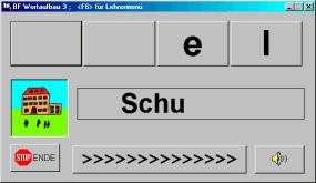 BF Wortaufbau 3 Gleiche Funktionen wie Wortaufbau 2, jedoch mit Buchstaben statt Lautbildern. |